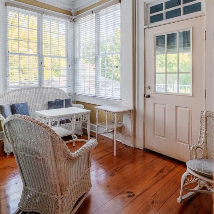 Near the back of the house, there was a sunroom filled with wicker furniture and soft cushions. It felt like a space meant for waiting, watching the yard, and having conversations that do not need a clear ending.