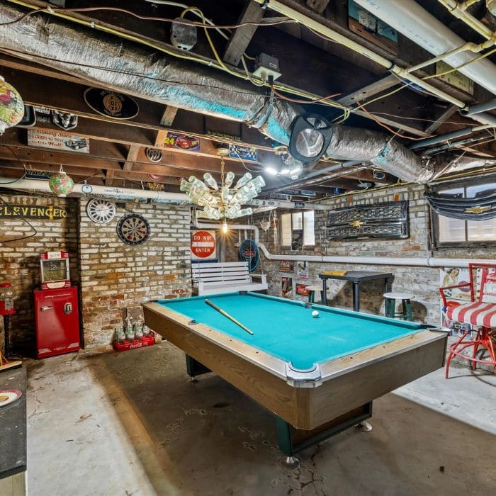 Neon signs, metal bar stools, exposed brick, quirky décor, and a billiards table waiting in the center. It had an almost retro bar feel that contrasted wildly with the rest of the home.