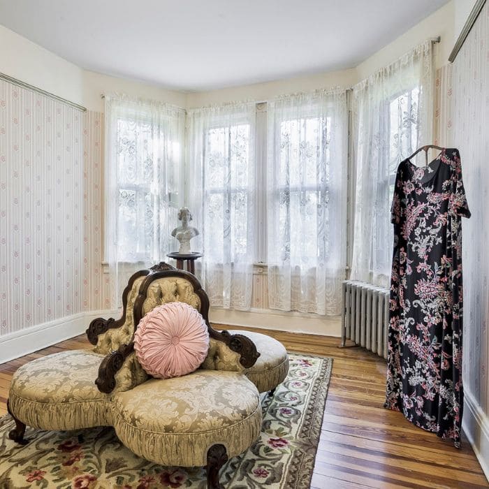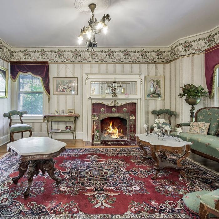 Victorians believed a well-decorated parlor reflected good morals and social standing, so they filled them with vases, framed art, lace drapery, and carefully arranged furniture. This room still holds all of that energy.