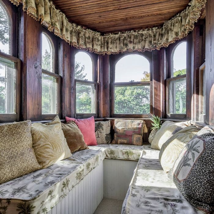 These tower nooks were loved during the era because they offered light from multiple angles, perfect for embroidery or letter-writing.