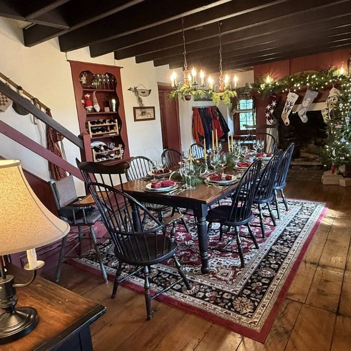 The stone fireplace had a wreath hung above it, and the chairs lined neatly along the table looked like they were waiting for a summer evening.