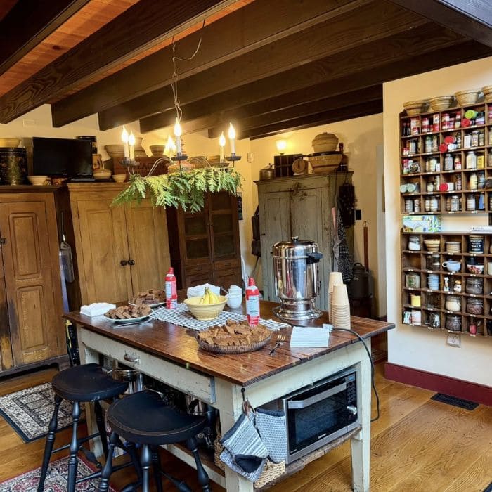 Above the island, she hung a simple garland from her light fixture, and it gave the whole kitchen this warm pine scent mixed with cinnamon from her baked treats.