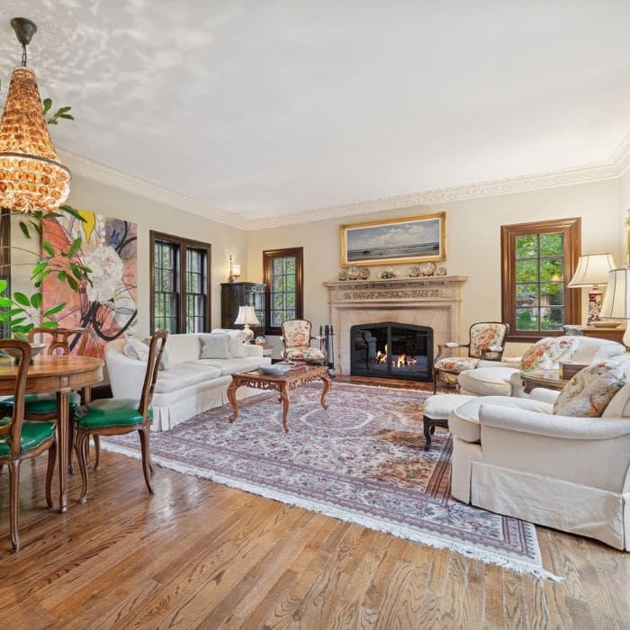 Look at this living room! Furniture was arranged close enough to encourage talking, not pushed back to create empty space. The fireplace sat at the center, with shelves on both sides holding books, old photos, and objects collected over time.