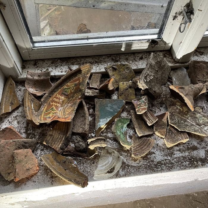 By the window, a pile of fragments lay carefully arranged. They were pieces of slipware pottery decorated with zigzag lines, a pattern common in Central Europe around the 17th century,