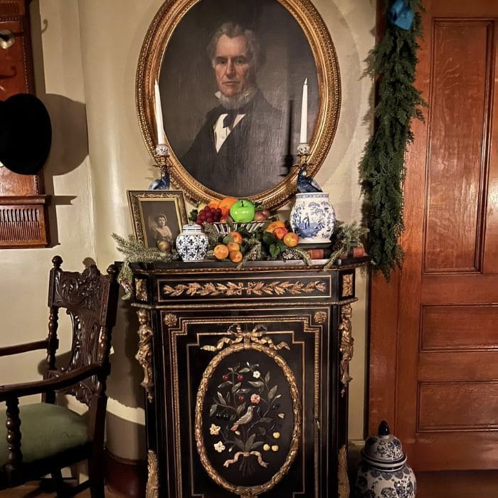 Suddenly the portrait above felt more approachable, almost as if the people in the paintings were part of the holiday celebration. The fruit softened the dark tones, while the porcelain jars added lightness and pattern.