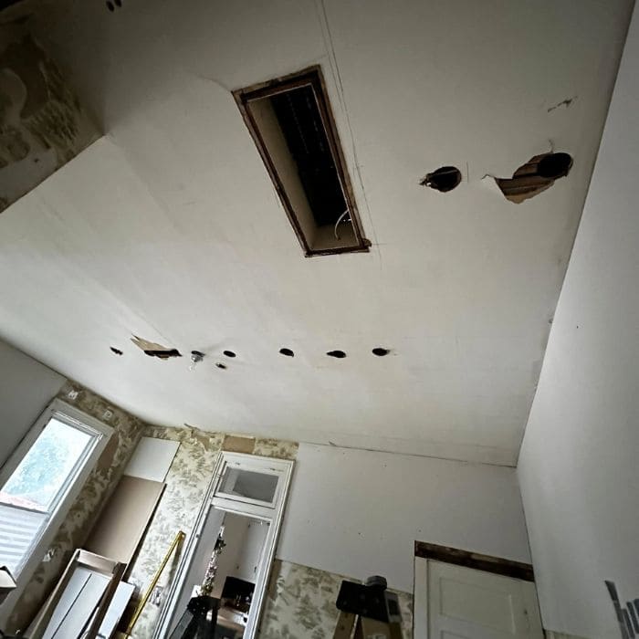 The ceiling had always been a bit unpredictable. Once Dan poked at one of the soft spots, a small section crumbled, and that told us everything we needed to know.