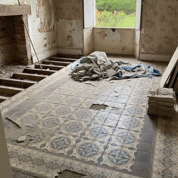 Then luck showed up in the most unexpected way. Someone posted about an old house nearby being stripped for renovation. The owner was clearing everything, including a pile of original cement tiles from their entry.