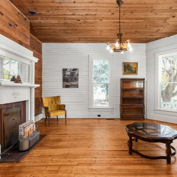 The original shiplap walls, mantels, and fireplaces remain intact, giving each room a sense of quiet authenticity. Even empty, the place didn’t feel lifeless. It felt paused, as if waiting for the right hands to bring it forward.